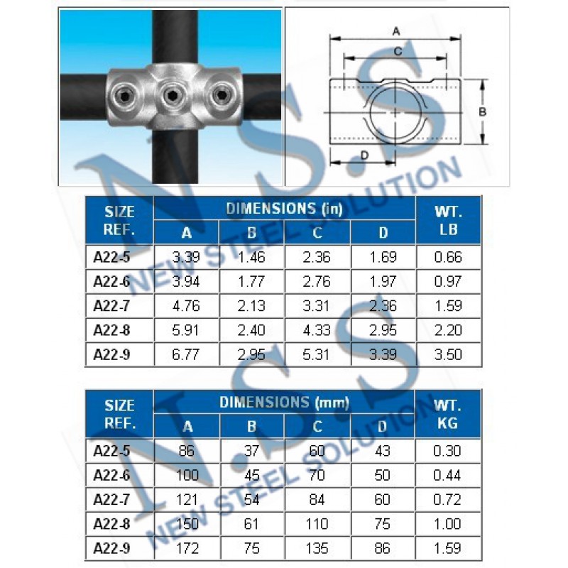 THE PIPE CLAMP FITTING IS FOR TWO SOCKET CROSS SECTION.